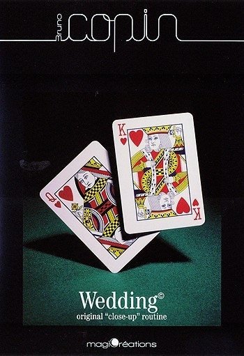 Wedding is een liefdes verhaal die wordt uitgebeeld door 2 speelkaarten die u manipuleert als poppen met een eigen karakter. Deze routine is geschikt voor close-up uitvoeringen waarbij u een tafel tot u beschikking heeft. U heeft een pak kaarten. Deze introduceert u als het kasteel en langzamerhand komen de kaarten tot leven. De toeschouwers belanden al snel in dit sprookje. Wat echt geweldig is hoe de kaarten zichzelf uit het pakje kaarten bevrijden. Dit gebeurd niet n keer maar zelfs twee keer. Alleen dit effect is de prijs van dvd al waard. Bruno Copin Heeft zelfs zijn eigen muziek laten componeren om deze truc nog levendiger en magischer over te laten komen. De muziek is bij de dvd inbegrepen. Verder kan het pakje kaarten voor en na het effect uit handen worden gegeven. Dit alles zorgt ervoor dat u een illusie kan vertonen waar nog lang over na zal worden gepraat
